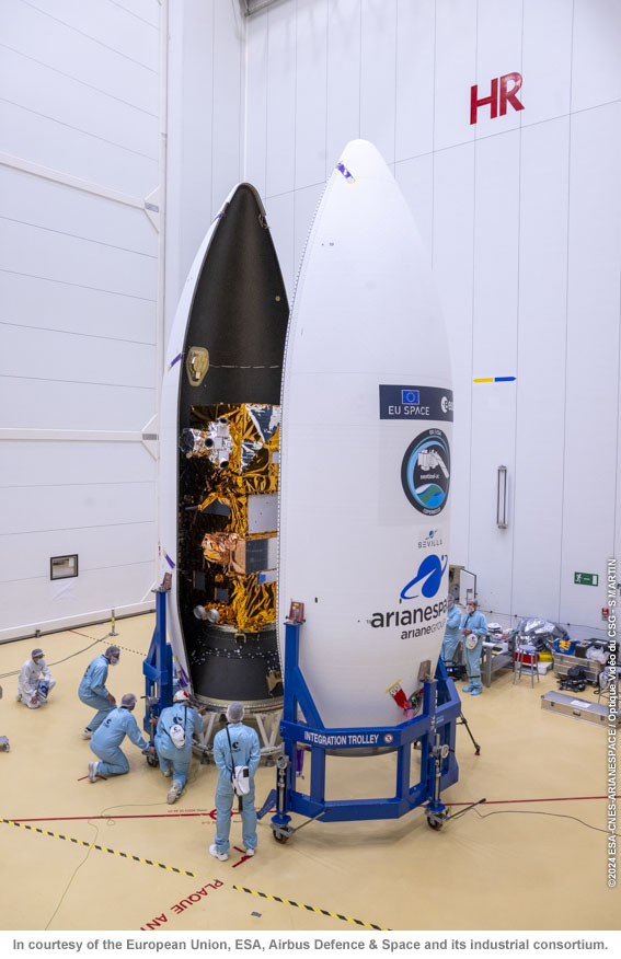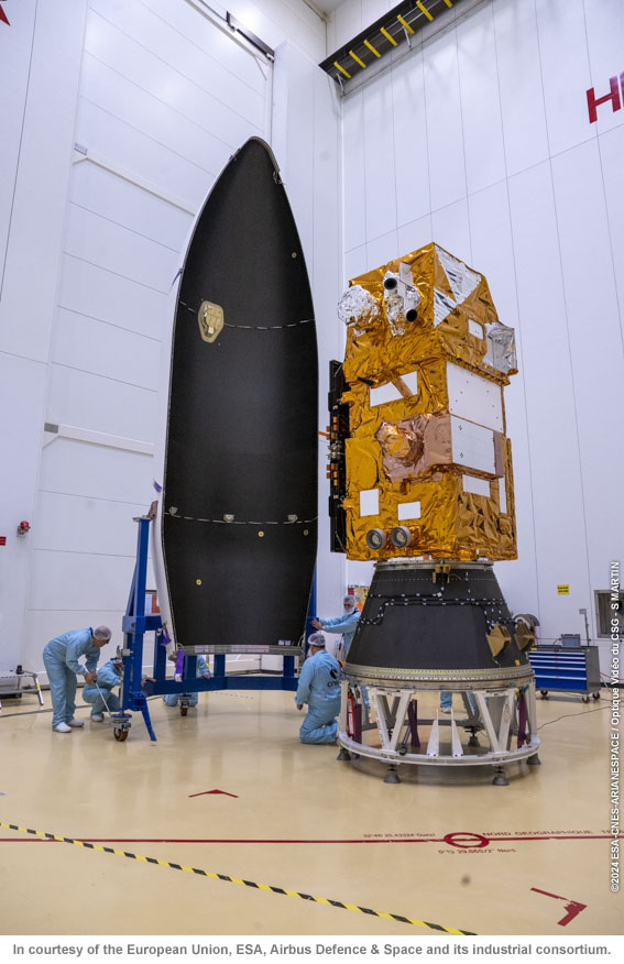 For a couple of hours before the fairing closure, during the final inspection before flight, the lucky ones who were here could enjoy a fabulous sight: Sentinel-2C was more beautiful than ever, all dressed-up in its flight configuration, looking like a precious jewel…