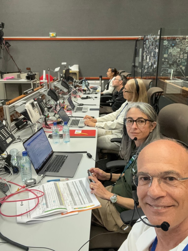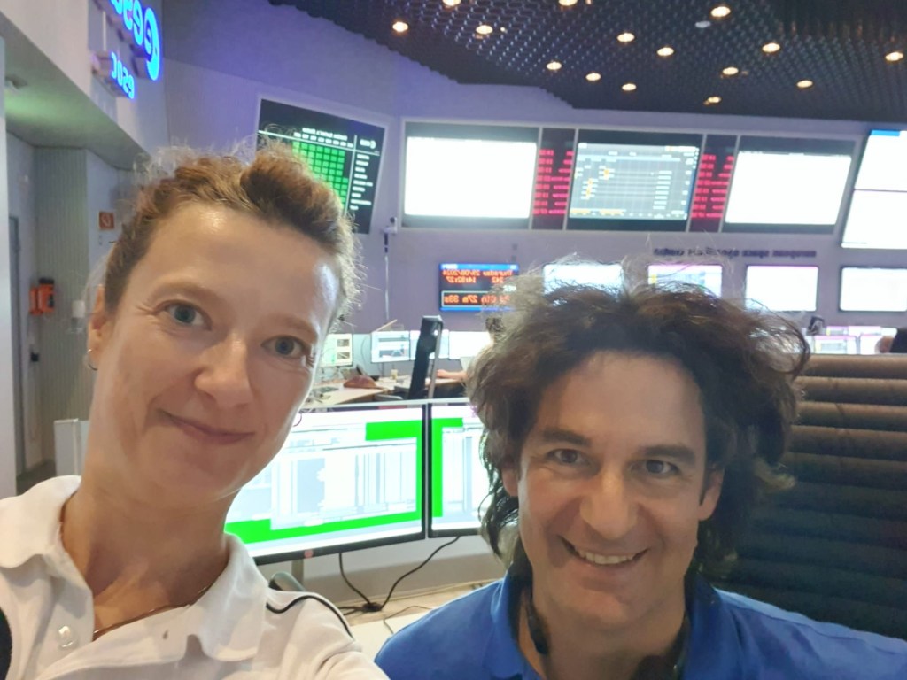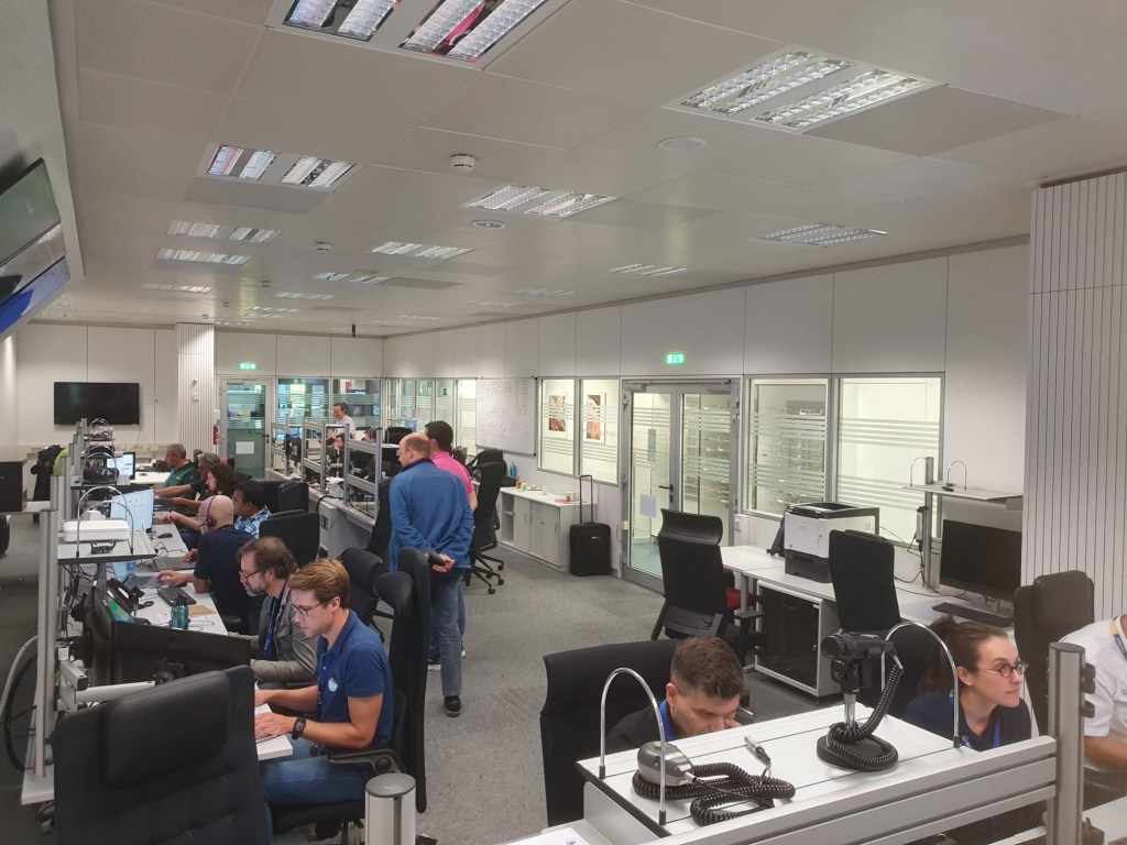 Marc, Bogdan, Jesus and Erwin (and many more experts from ESA and ADS) in the PSR were analyzing the satellite real time telemetry transmitted from Kourou via the NDIU routers. Ana and Davide in the MCR coordinated the interactions between Project Support and Operations teams. All the systems were “green”, including the Ground Stations.